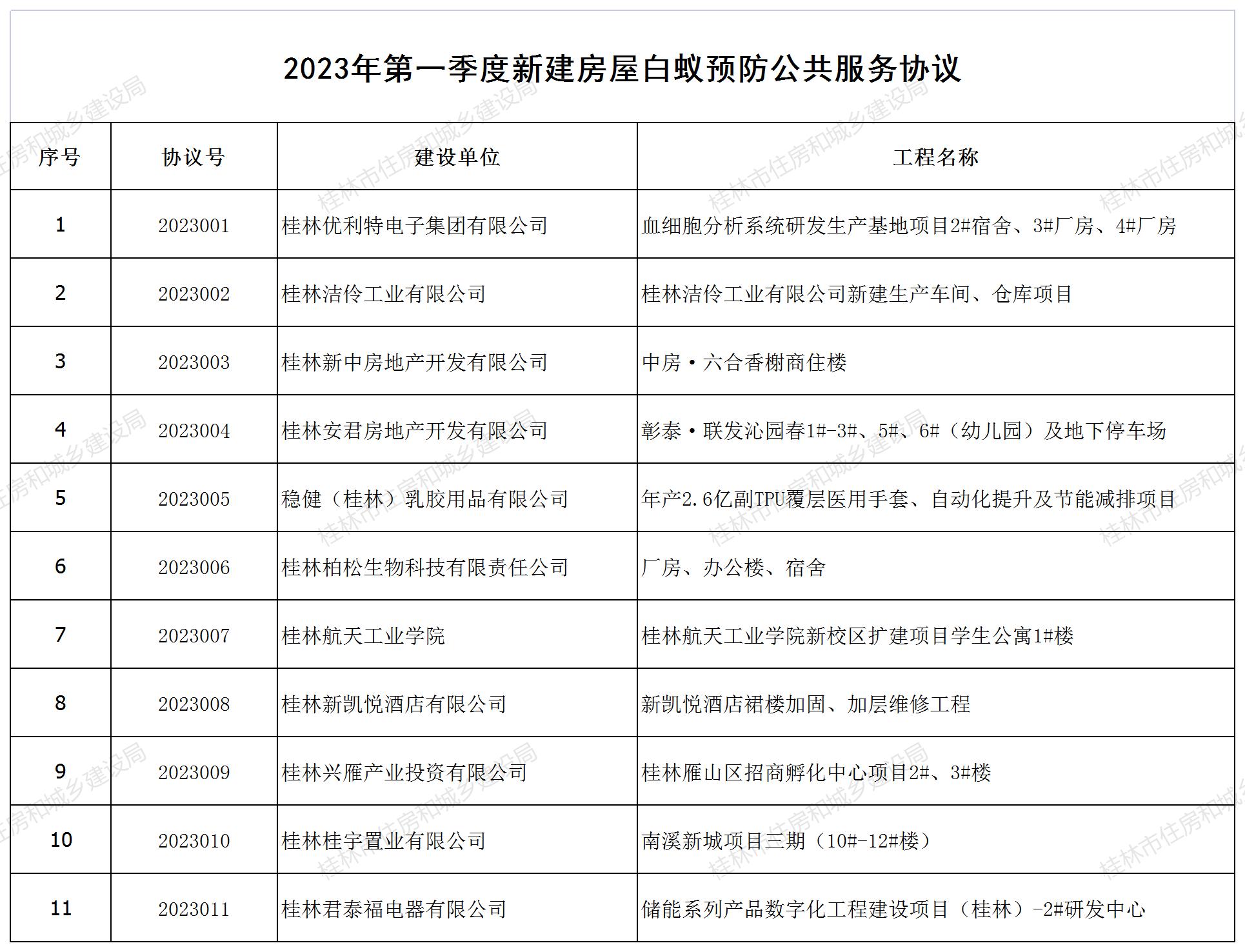 2023年第一季度新建房屋白蚁预防公共服务协议