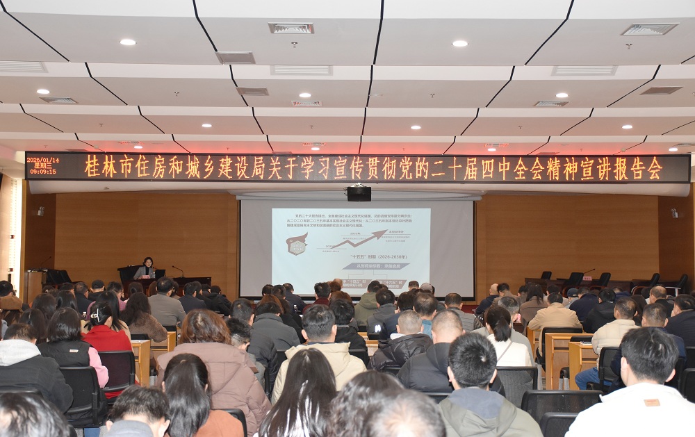 1月14日,桂林市住房和城乡建设局系统召开学习贯彻党的二十届四中全会精神宣讲报告会,报告会邀请市委党校副教授、市宣讲团专家丁萍进行授课。