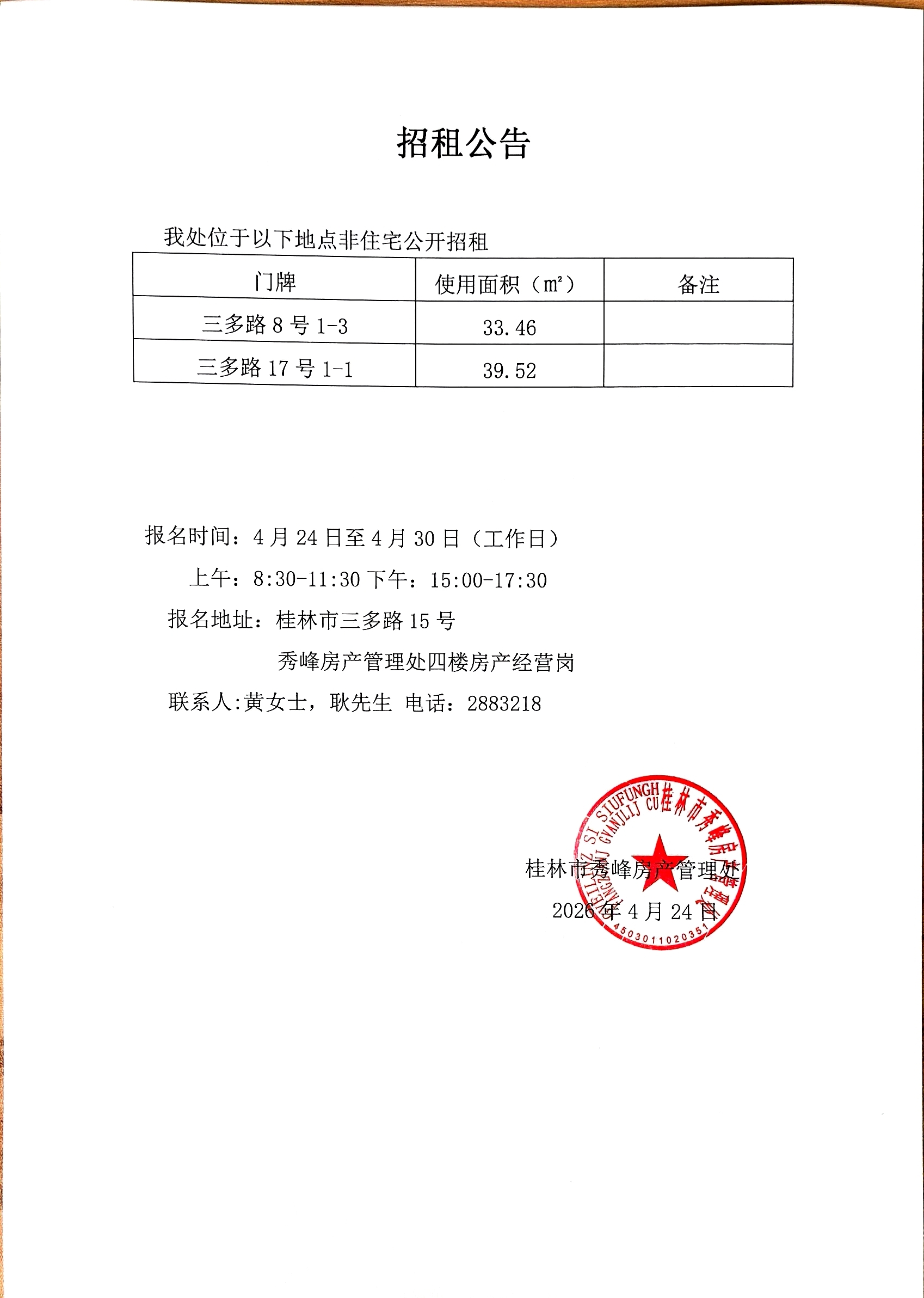 2026-04-24 11:39 来源:桂林市住房和城乡建设局 作者:桂林市秀峰房产管理处
