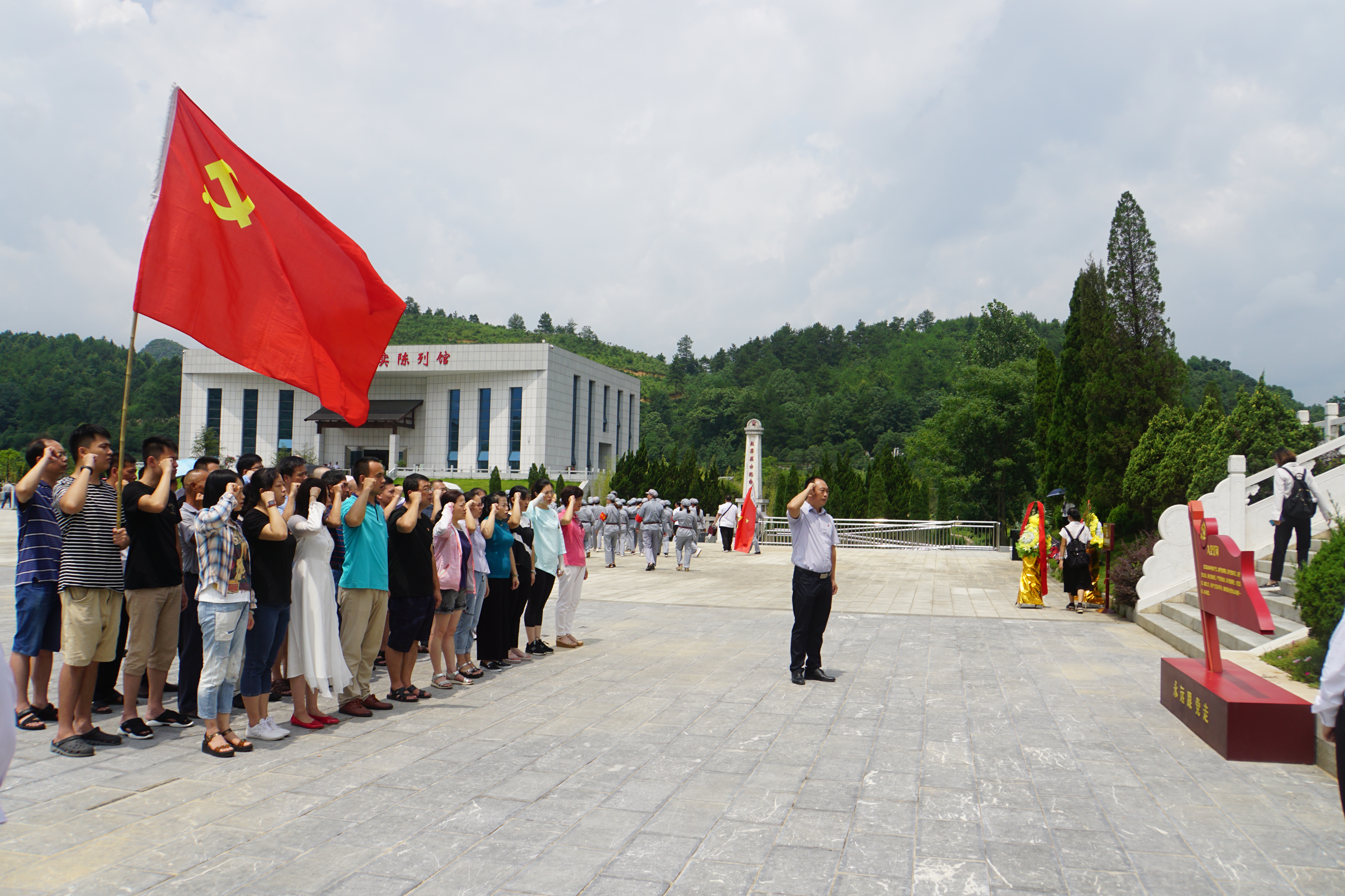 为庆祝中国共产党建党99周年,7月1日,桂林市七星房产管理处组织全体党员来到灌阳县新圩阻击战红色基地,缅怀革命烈士。