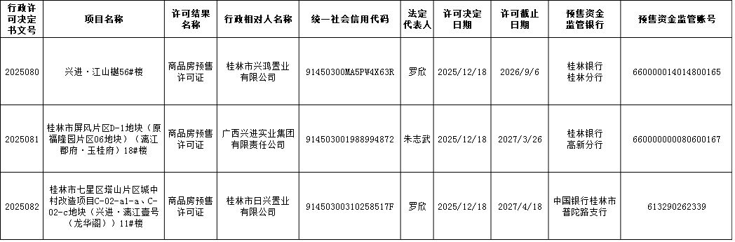 第2025080、2025081、2025082号商品房预售许可证结果公示