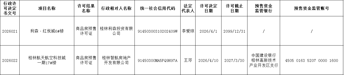 第2026021、2026022号商品房销售许可证结果公示