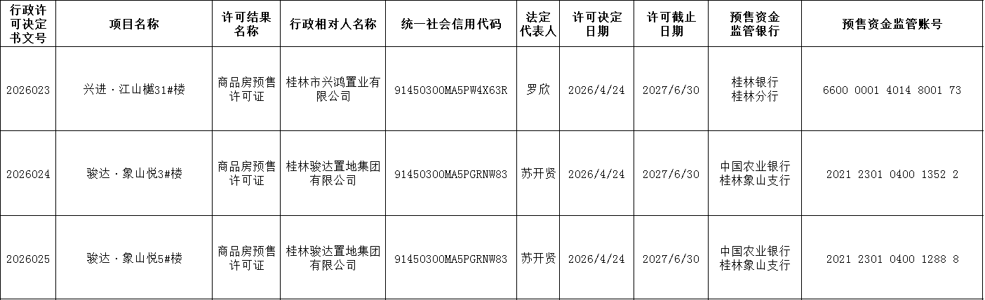 第2026023、2026024、2026025号商品房预售许可证结果公示
