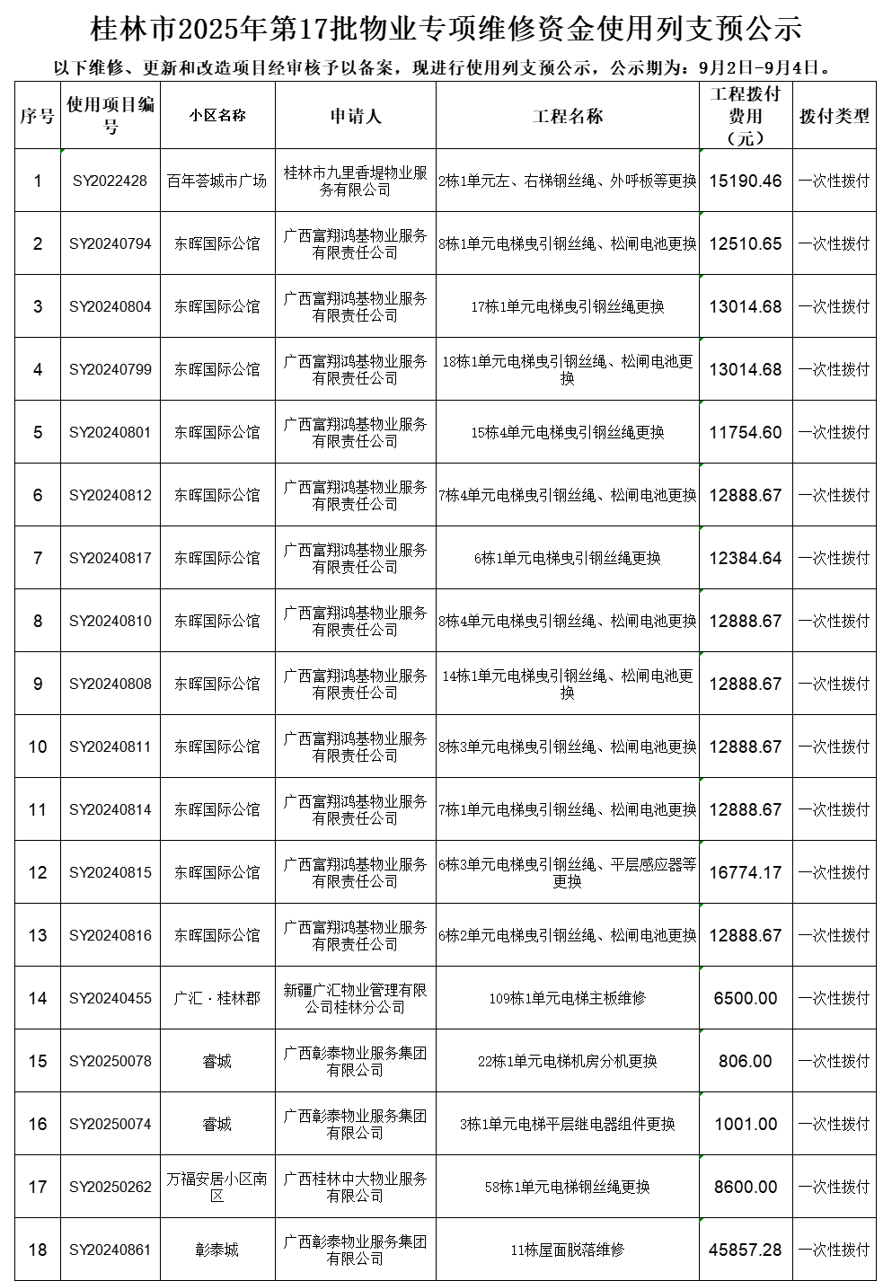 桂林市 2025年第17批物业专项维修资金使用列支预公示