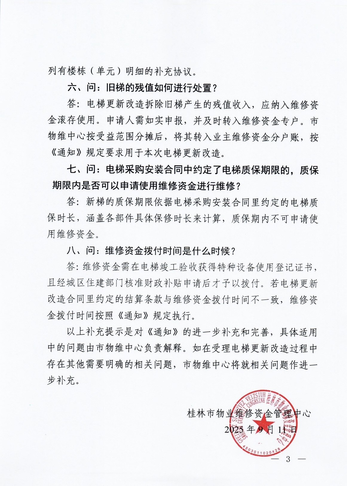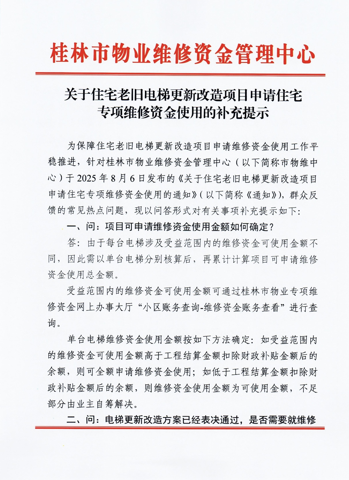 关于住宅老旧电梯更新改造项目申请住宅专项维修资金使用的补充提示