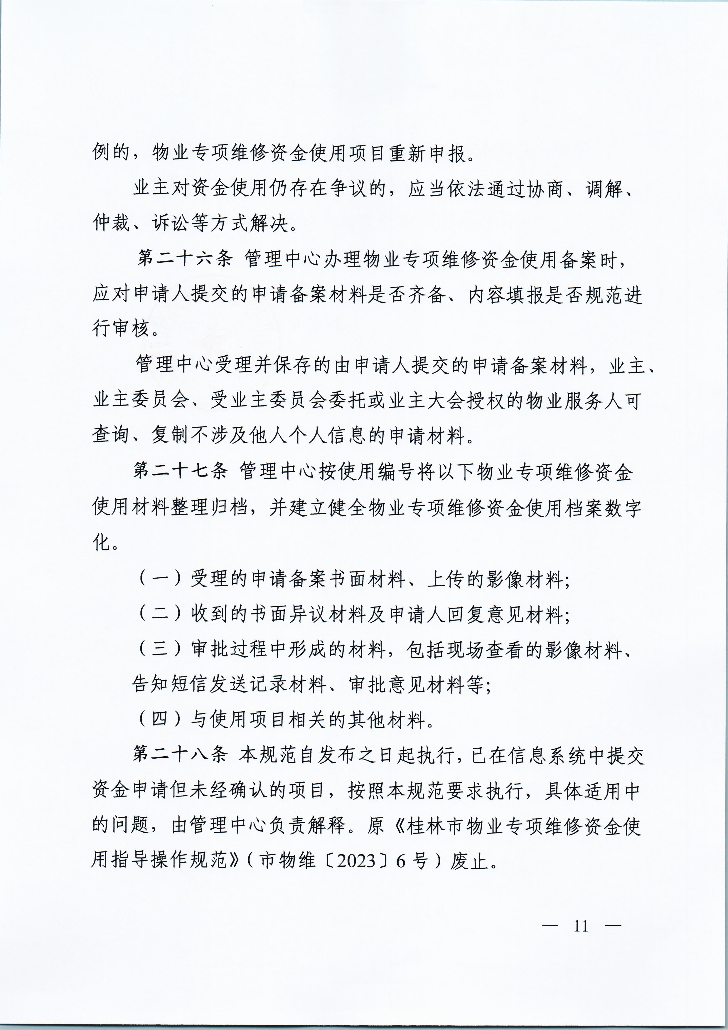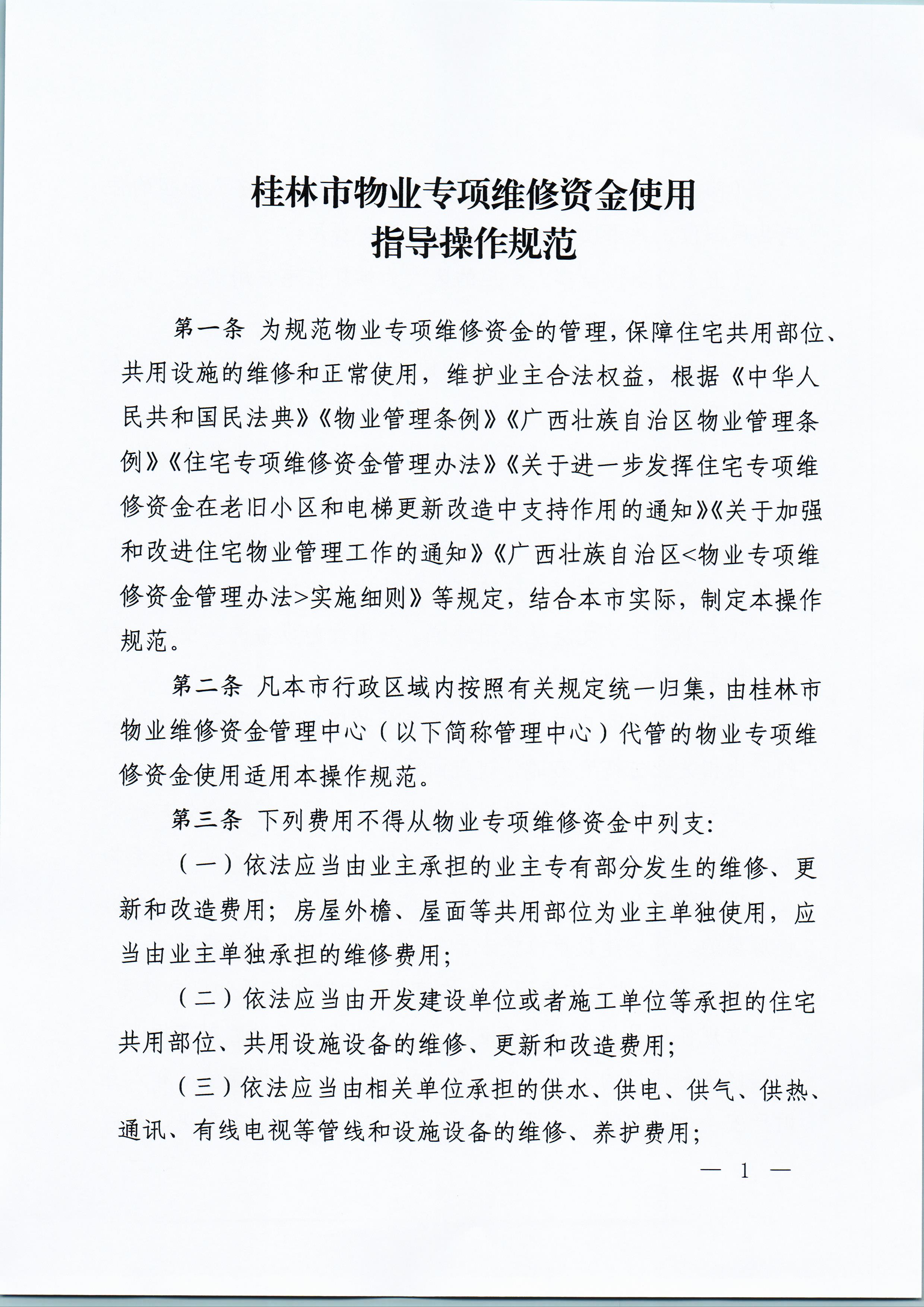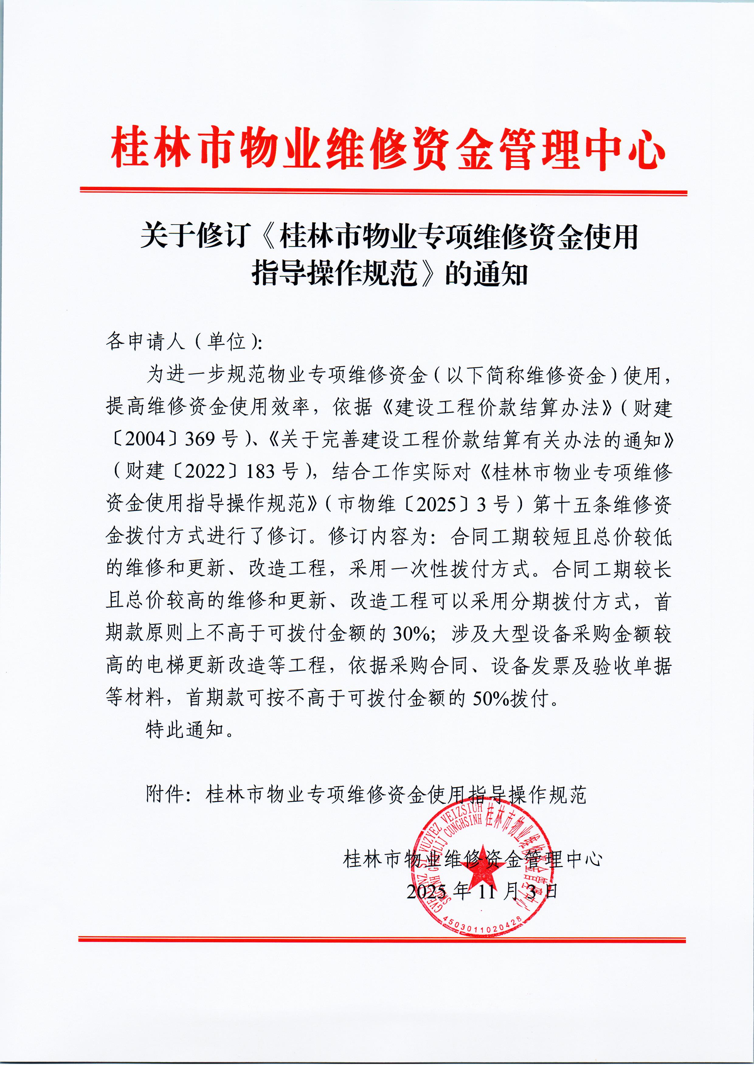 关于修订《桂林市物业专项维修资金使用指导操作规范》的通知