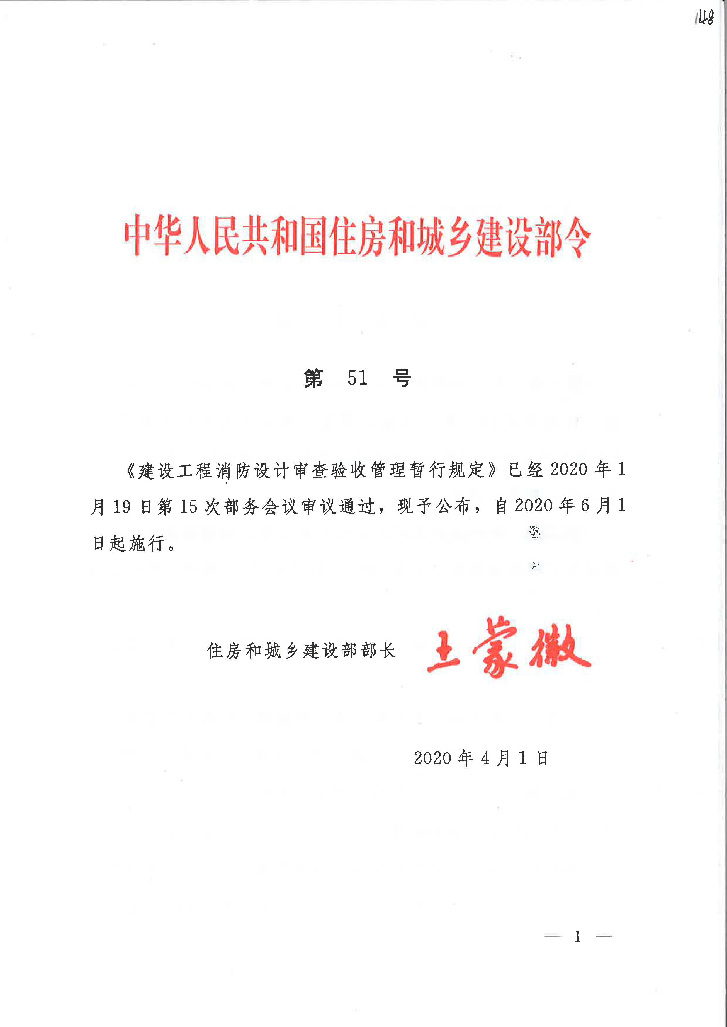 住建部第51号令-《建设工程消防设计审査验收管理暂行规定》