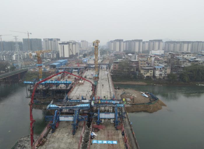 2024年1月31日,随着最后一方混凝土浇筑入模,经过4个小时的连续奋战,由中建八局第二建设有限公司承建的桂林市净瓶山桥拆除重建工程-新建净瓶山大桥右幅辅道桥现浇箱梁顺利完成合龙浇筑,标志着工程取得关键性进展,2024年年内实现通车目标指日可待。