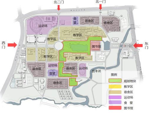 (4)通过绿地缓解雁栖湖的调蓄压力。校园内设有约6万平方米的绿地区域,通过绿地土壤的渗滤作用和植物的净化能力,可实现雨水的自然渗透,缓解暴雨期雁栖湖的调蓄压力,保障绿化及下游连通水体的水环境质量。