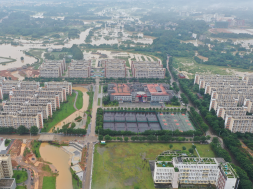 广西师范大学雁山校区位于桂林市良丰河河畔,校园内的雁栖湖是通过整治天然沟渠形成的校内水系,与良丰河相连通。受良丰河河水倒灌和校园内涝积水的双重影响,项目建设前洪涝问题较严重,学校于汛期多次受灾,受灾师生上万人。在海绵城市理念的指导下,近年来实施了雁栖湖(防洪排涝)工程,通过修建防洪堤、整治雁栖湖水系空间、修建排涝泵站和闸门、增设源头减排设施、加强汛期应急管理等措施,系统解决良丰河洪水过境造成的洪涝问题。项目建设后,校园内防洪排涝能力显著增强,面对2022年的“龙舟水”天气(24小时降雨量达到240毫米),校园未受淹,实现了河道水位上涨不影响校园道路和教学生活区的项目实施成效。