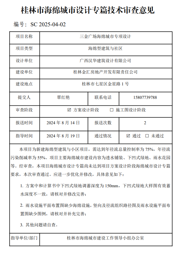 【技术审查】三金广场项目海绵城市设计专篇技术审查意见