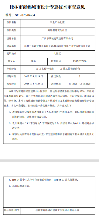 【技术审查】三金广场北苑海绵城市设计专篇技术审查意见