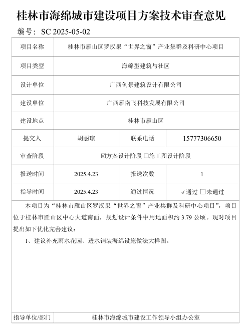 桂林市雁山区罗汉果“世界之窗”产业集群及科研中心项目海绵城市设计专篇技术审查意见.pdf