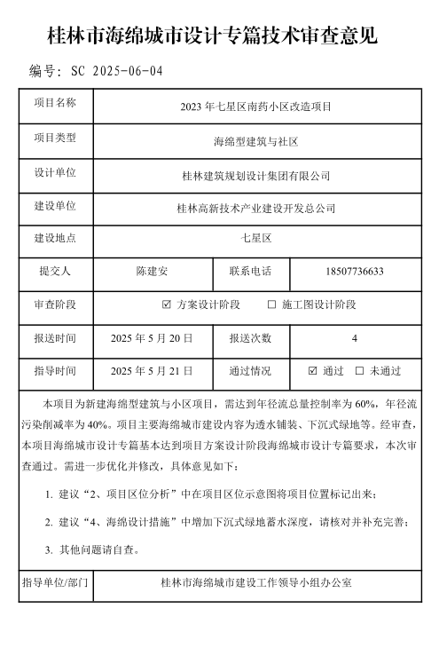 【技术审查】南药小区海绵城市设计专篇技术审查意见