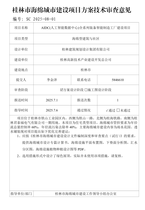 AIDC(人工智能数据中心)全系列装备智能制造工厂建设项目海绵城市设计专篇技术审查意见.pdf