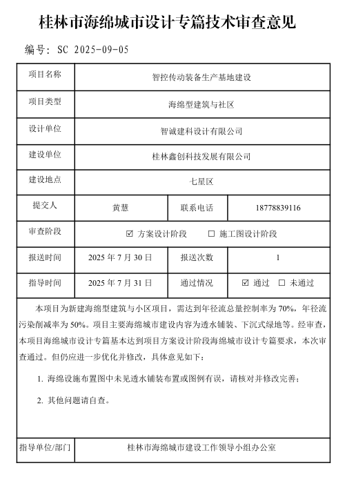 【技术审查】智控传动装备生产基地建设海绵城市设计专篇技术审查意见
