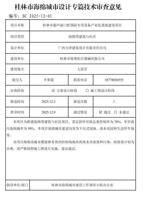 桂林市超声波口腔预防专用设备产业化基地建设项目海绵城市设计专篇技术审查意见.pdf