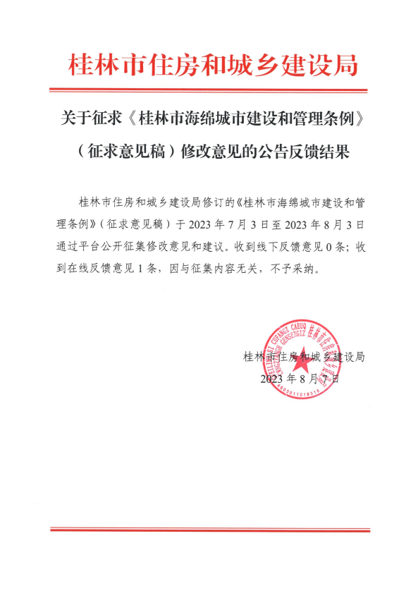 关于征求《桂林市海绵城市建设和管理条例》(征求意见稿)修改意见的公告反馈结果