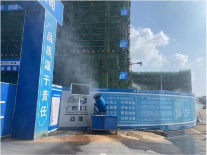 施工大门干净、雾炮降尘正常开启