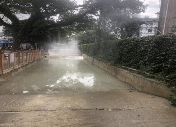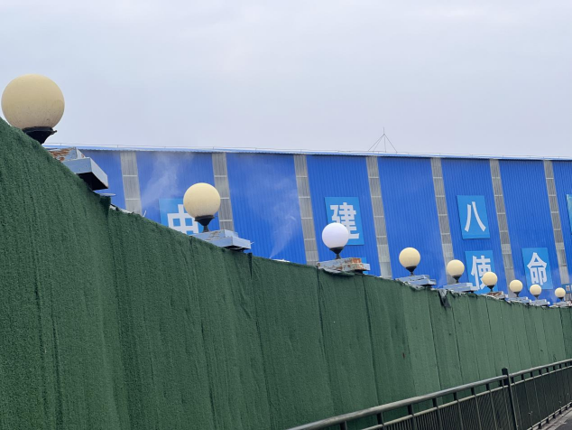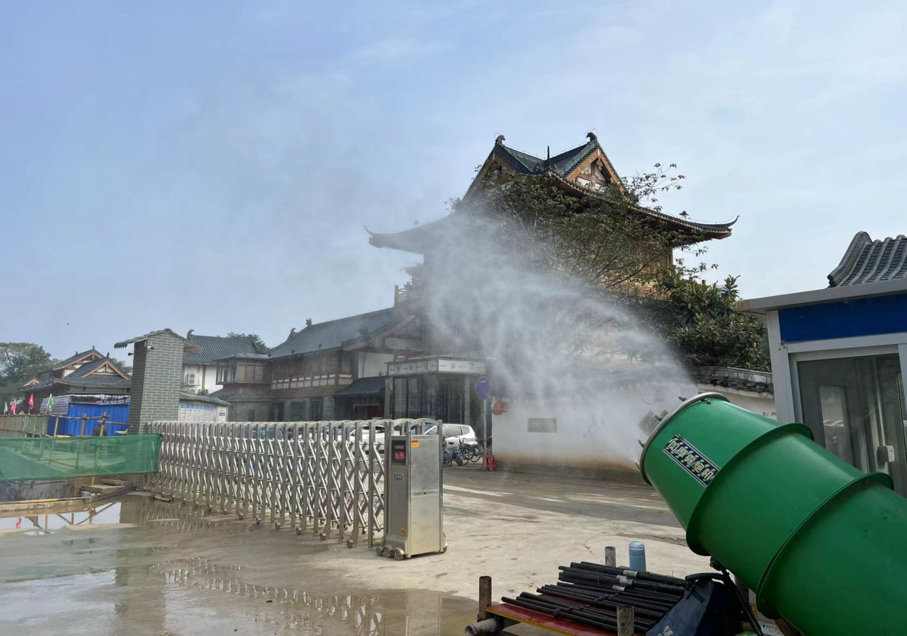 工地围挡喷淋设施、雾炮开启正常,车辆冲洗平台能正常使用,场内建筑垃圾基本覆盖。