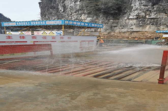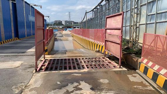 施工大门保持干净、围挡喷淋正常使用、施工大门洗车平台正常
