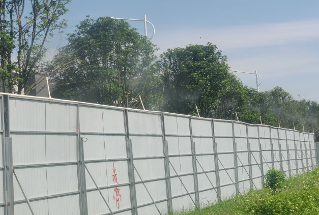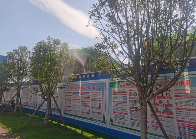 工地大门路面干净整洁,围挡喷淋设施开启正常,场内主要道路硬化,车辆冲洗平台、雾炮机能正常使用,场内裸露土方覆盖,砂浆罐有防尘帘。